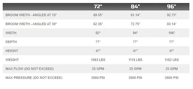• Includes angle broom, side shift frame & hoses and couplers